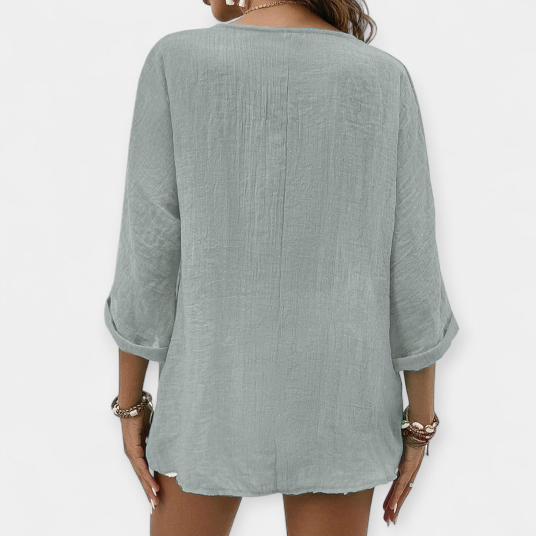 Lightweight linen shirt with a V-neck for an elegant and cool everyday look.