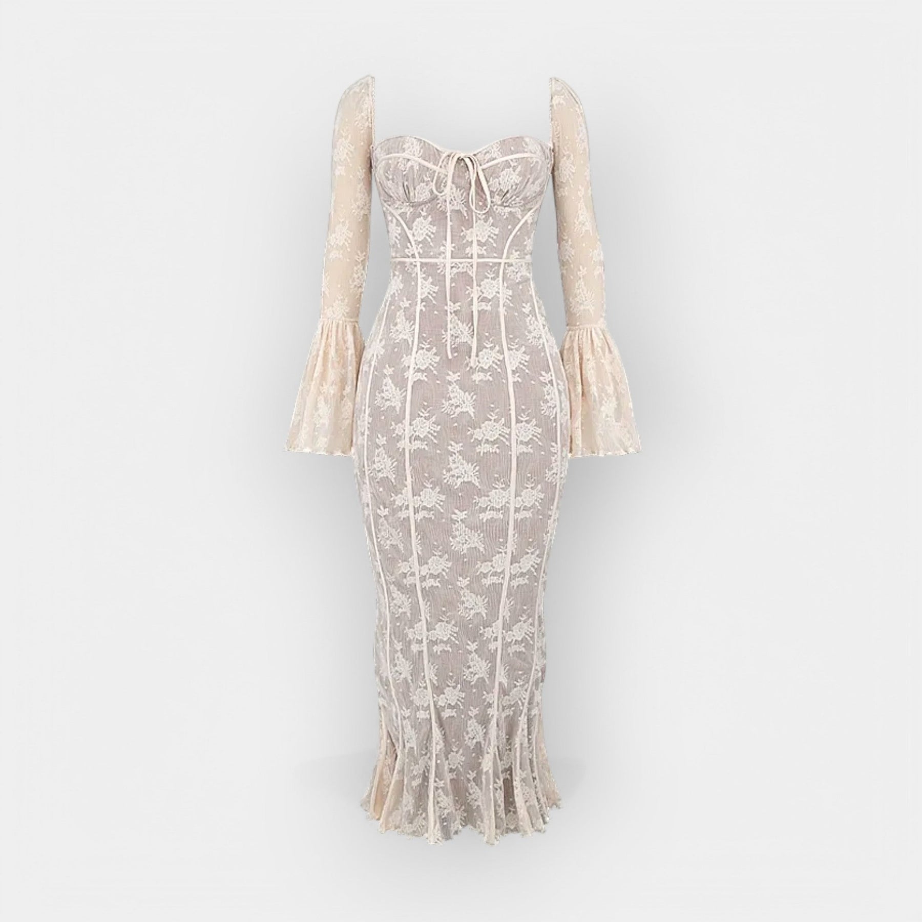 Elegant and airy, this dress exudes understated luxury and feminine confidence. Its maxi cut gives movement and harmony, making it ideal for evening outings and special memorable moments.